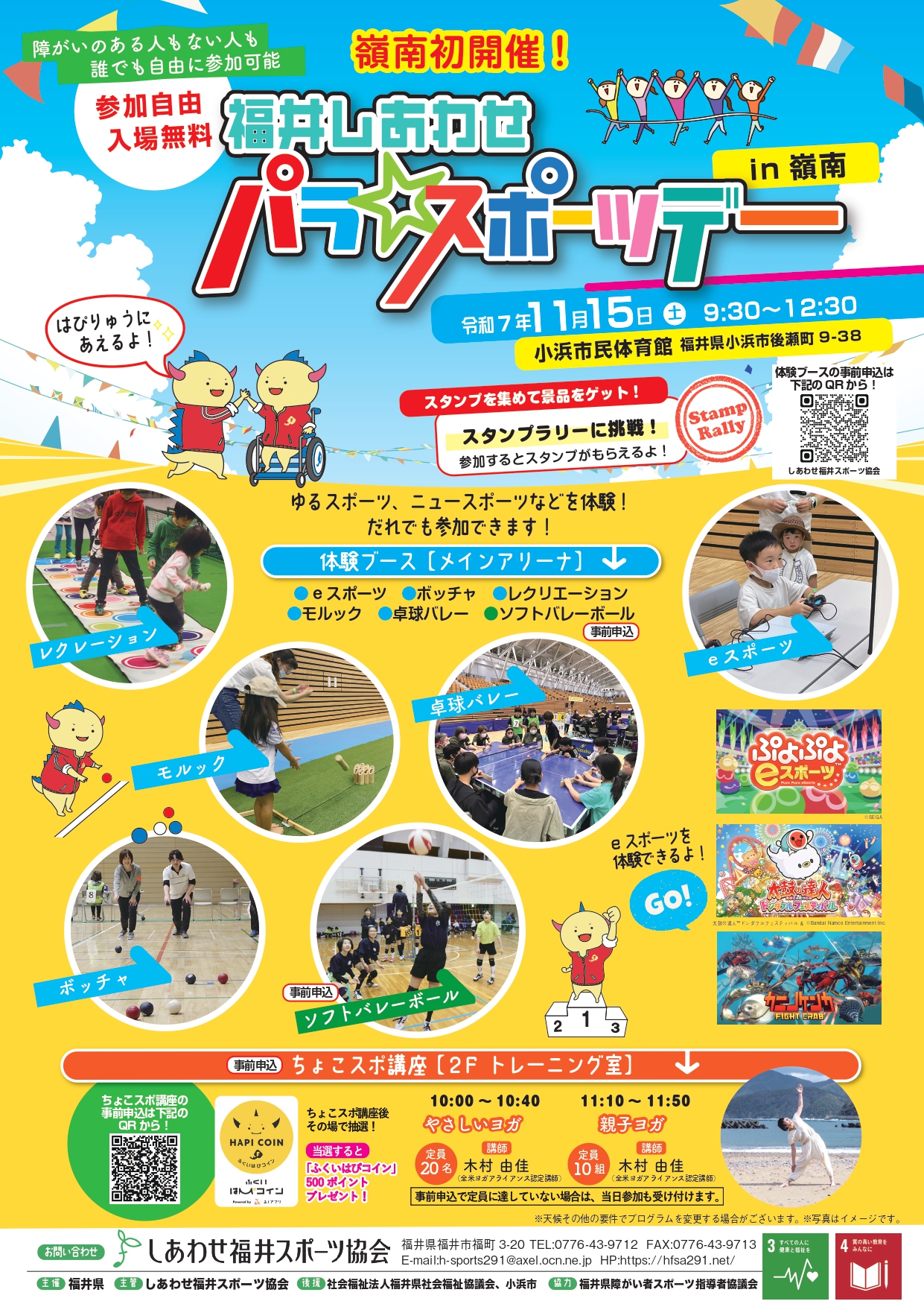 「福井しあわせパラ☆スポーツデーin嶺南」が11月15日(土)に開催されます!